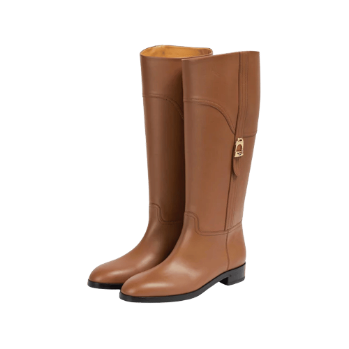 4.51%Gucci leather flat knee high boots brown and gold-tone stirrup hardware