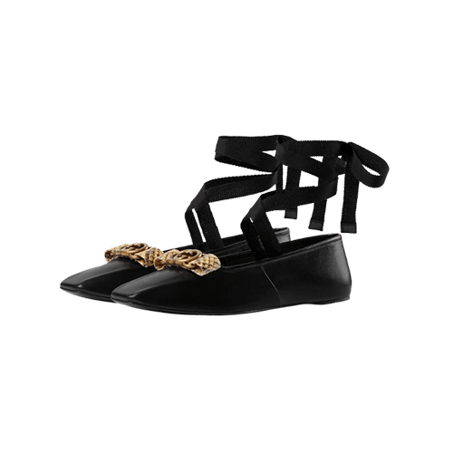 9.03%Gucci horsebit chain pointed ballet leather pink