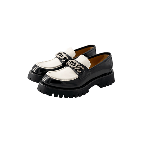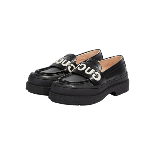7.53%Gucci logo platform leather loafers a white logo and scalloped rubber edges black